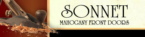 We are Sonnet Mahogany Front Doors. We manufacture true Honduran Mahogany solid front entry doors. Hand crafted in Honduras and FSC certified, our custom doors are resistant to warping, chipping, and bowing. We use new technology to create old world style. We cater to luxury home builders and astute homeowners, with discerning tastes for remarkable quality and precision craftsmanship. Our entry doors are 2-1/4" thick. Our jambs are 1-3/4" thick. It's a superior product with greater security and unmatched style. Make a statement on your home. Buy Sonnet Mahogany Front Doors. |